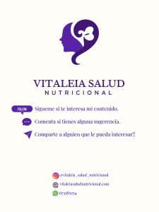 Te invito a seguirme en Instagram: @vitaleia_salud_nutricional. Dónde comparto contenido sobre salud, consejos y desafíos saludables, además de publicar ofertas especiales.